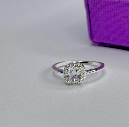 Anel quadrado micro zircônia banhada a prata- Tamanho 16/17